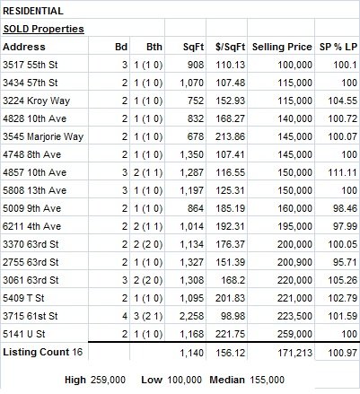 There were 16 homes sold in Elmhurst and Tahoe Park in the month of July, 2012.  That is a increase from the 13 homes sold in the area in the month of June 2012.  Here are the addresses and specific information.
