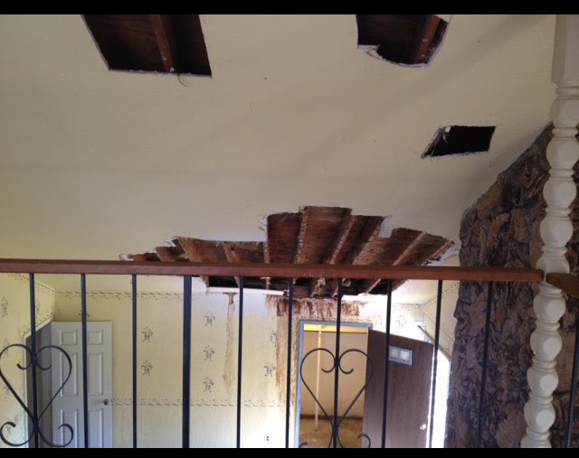 #InterestingWorldofRealEstate: Today’s photo was taken a few years back, i recently came across it while scanning through some old pictures in Google Photos. This was a bank owned home. I’m standing in a loft area looking down on the living room. That is the angled/vaulted ceiling, just completely destroyed. The entire house was like this: all the appliances missing, holes in walls, doors broken, you name. The sad thing is that this was a pretty common site at the height of the foreclosure peak in Sacramento. For a few years, nearly half of the homes i went inside had similar damage (typically not as bad but still damage none the less). I decided to post as shock to some people that maybe never saw this kind of stuff and also a reminder of unfortunately how bad things were for the economy/real estate/american family at that time. #SacramentoRealEstate #IthinkWeMightHaveAleak #PutSomeDuctTapeOnIt