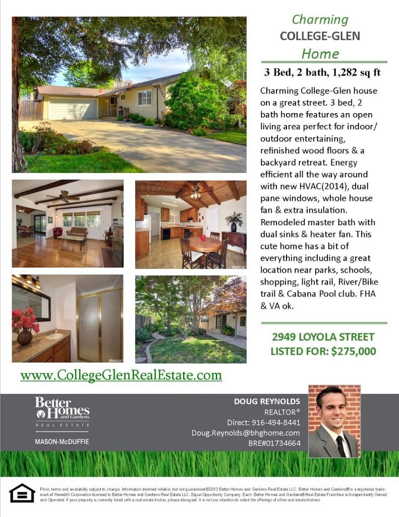Charming College-Glen house on a great street. 3 bed, 2 bath home features an open living area perfect for indoor/outdoor entertaining, refinished wood floors & a backyard retreat. Energy efficient all the way around w/ new HVAC(2014), dual pane windows, whole house fan & extra insulation. Remodeled master bath w/ dual sinks & heater fan. This cute home has a bit of everything including a great location near parks, schools, shopping, light rail, River/Bike trail & Cabana Pool club. FHA & VA ok.