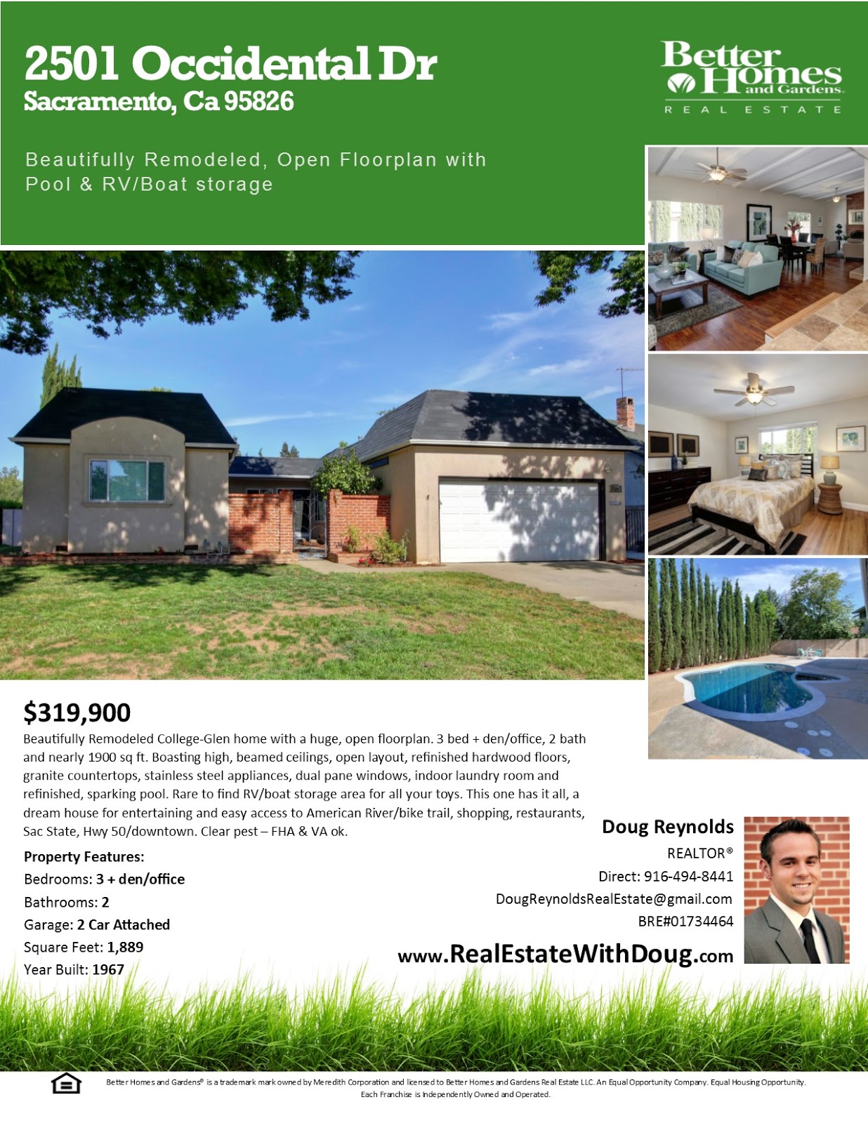 Beautifully Remodeled College-Glen home w/ a huge, open floorplan. 3 bed + den/office, 2 bath & 1,889 sq ft. Boasting high, beamed ceilings, open layout, refinished wood floors, granite counters, stainless steel appliances, dual pane windows, indoor laundry & a refinished, sparking pool. Rare to find RV/boat storage area for all your toys. This one has it all, a dream house for entertaining & easy access to American River/bike trail, shops, restaurants, Sac State, Hwy 50/downtown. FHA & VA ok.