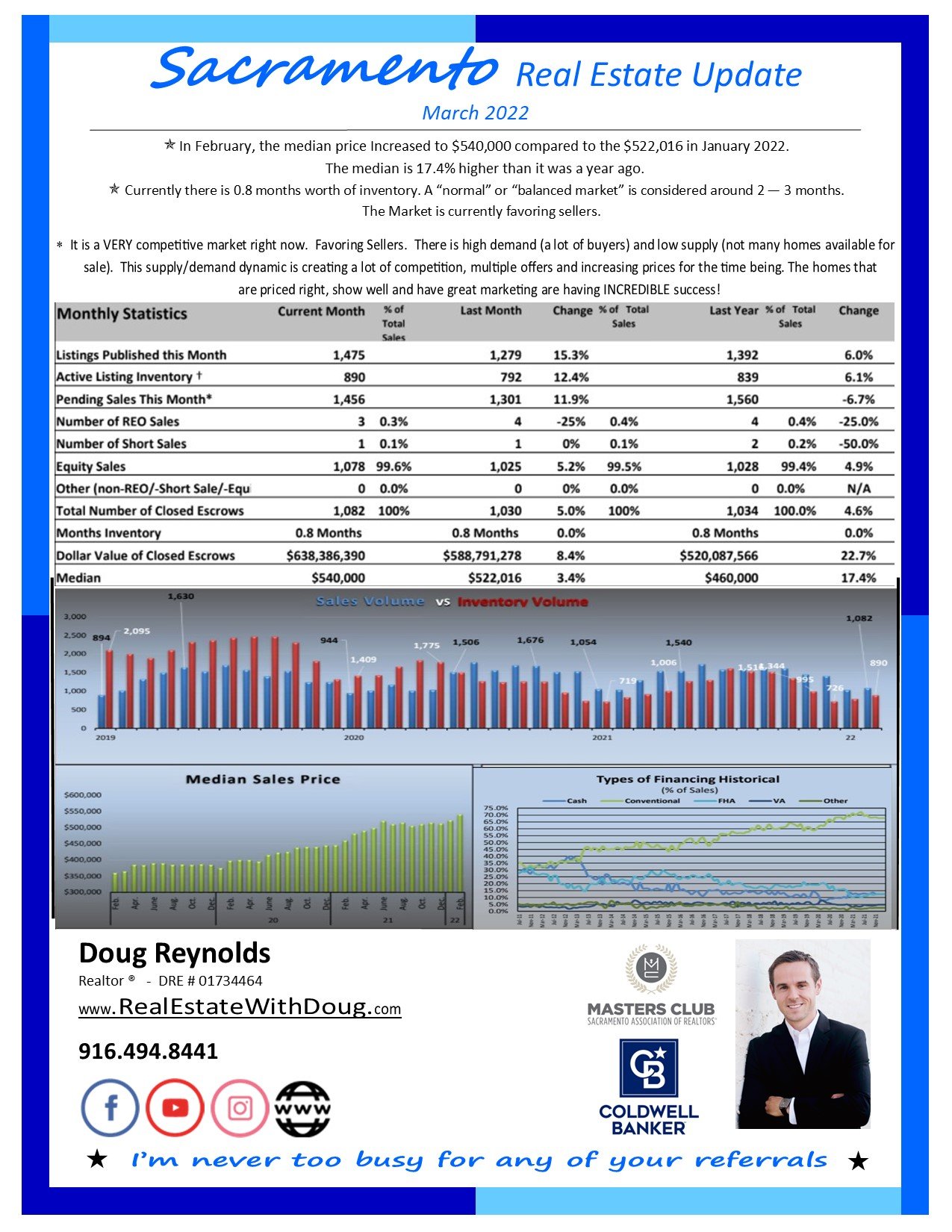 In February, the median price Increased to $540,000 compared to the $522,016 in January 2022.
